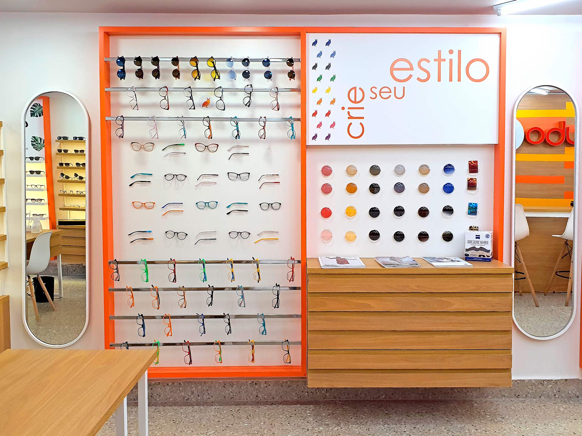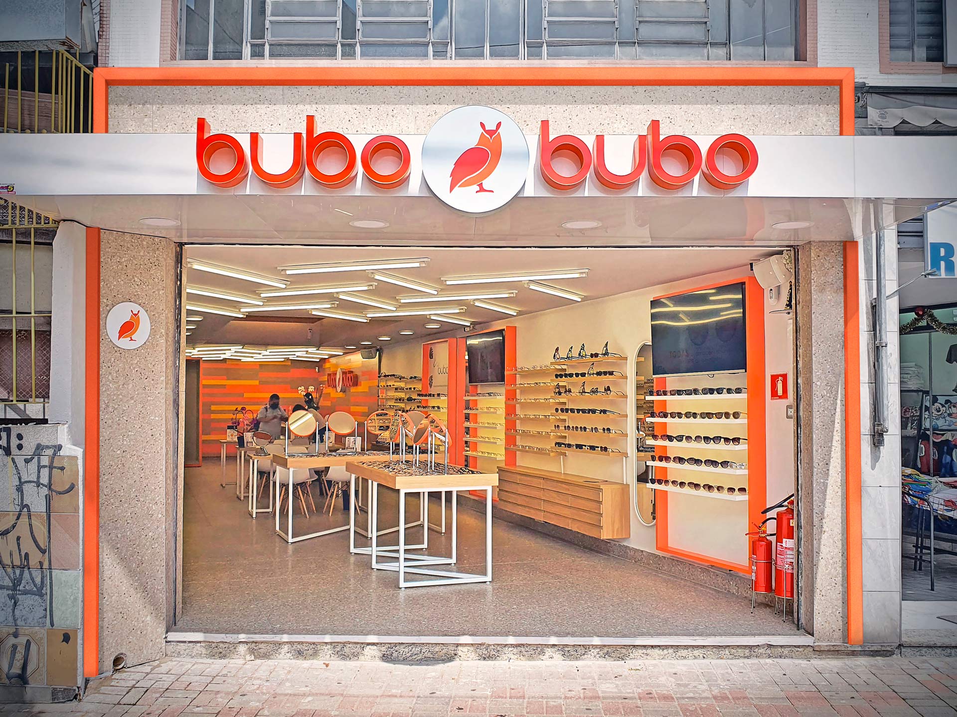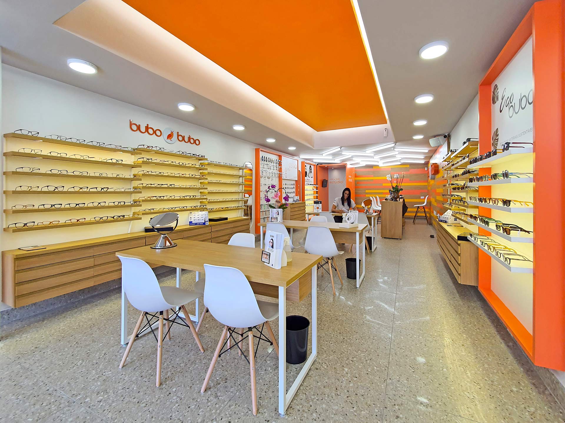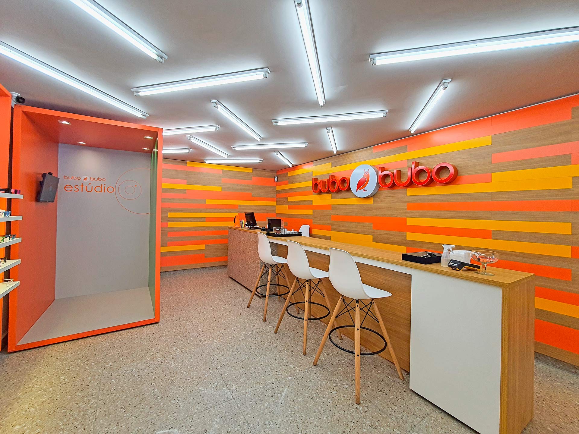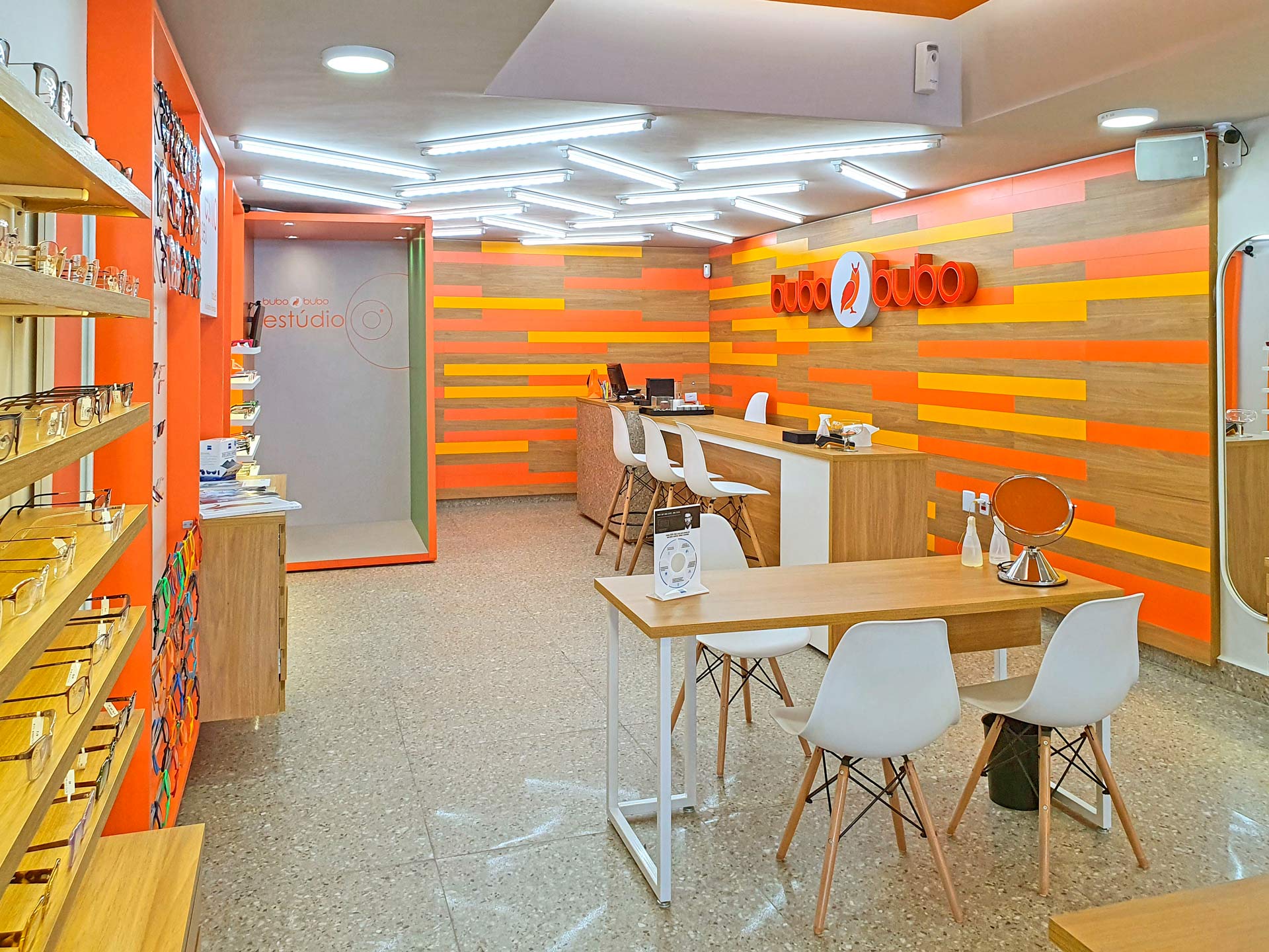 Alegre, humano e jovial, o projeto de loja buscou romper com a estética e o funcionamento frio e impessoal das óticas tradicionais, aliando design e inovação. A experiência é a grande protagonista, oferecendo interações multimidias, como o “Estúdio Bubo Bubo”, e a personalização de produtos através da experiência “Crie Seu Estilo”.