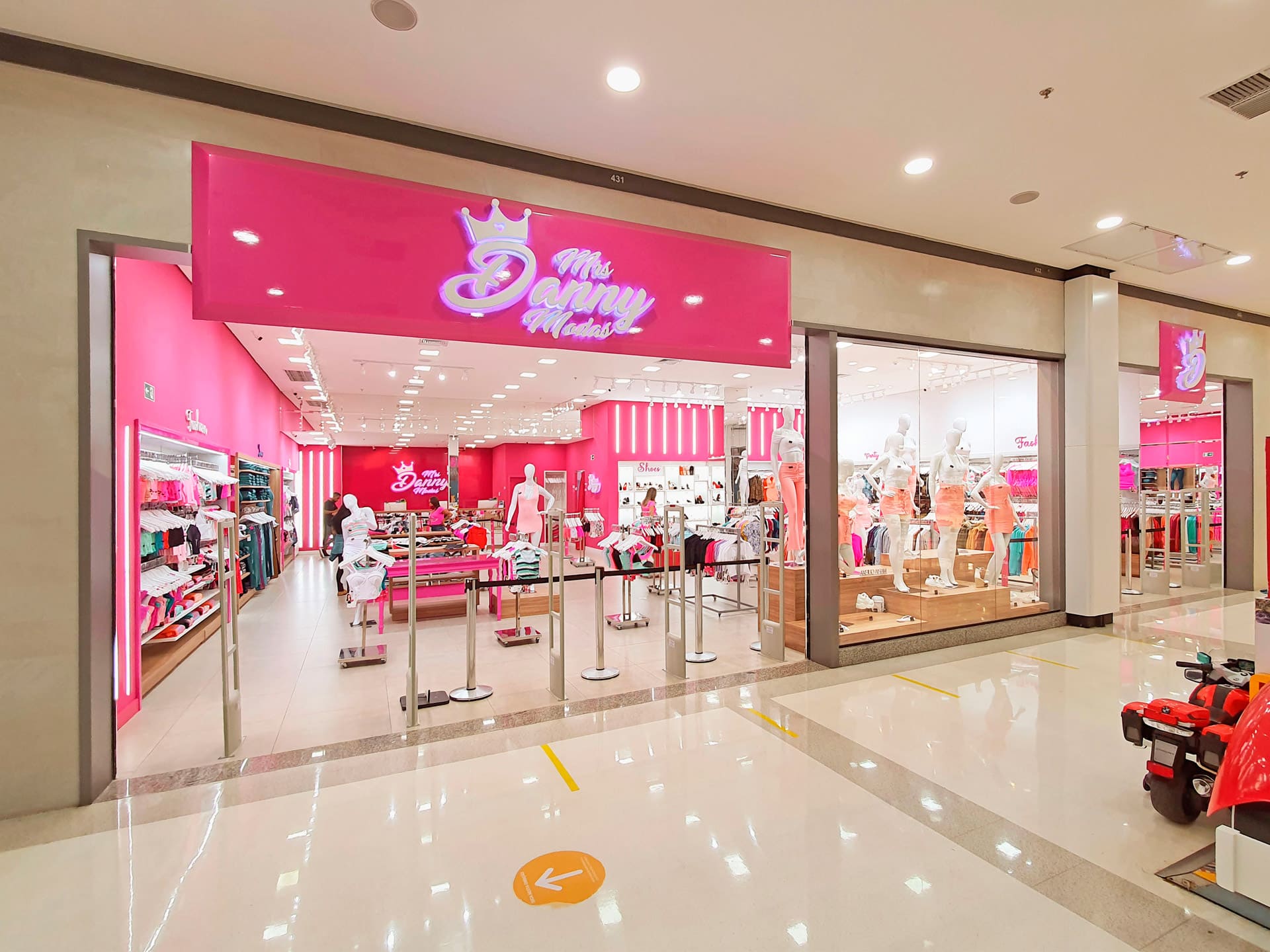 É com muito pink e muito brilho que a Mrs Danny Modas faz sucesso, uma loja em que se formam filas de consumidoras que, muitas vezes, precisam entrar sem seus acompanhantes devido ao grande movimento. A loja, que começou no centro de Itaquera, zona leste de São Paulo, inaugurou no Shopping Metro Itaquera em um espaço de 45m², com projeto da ARKT Varejo, e, em pouco mais de um ano, já se mudou para um novo espaço de 240m² no mesmo shopping.