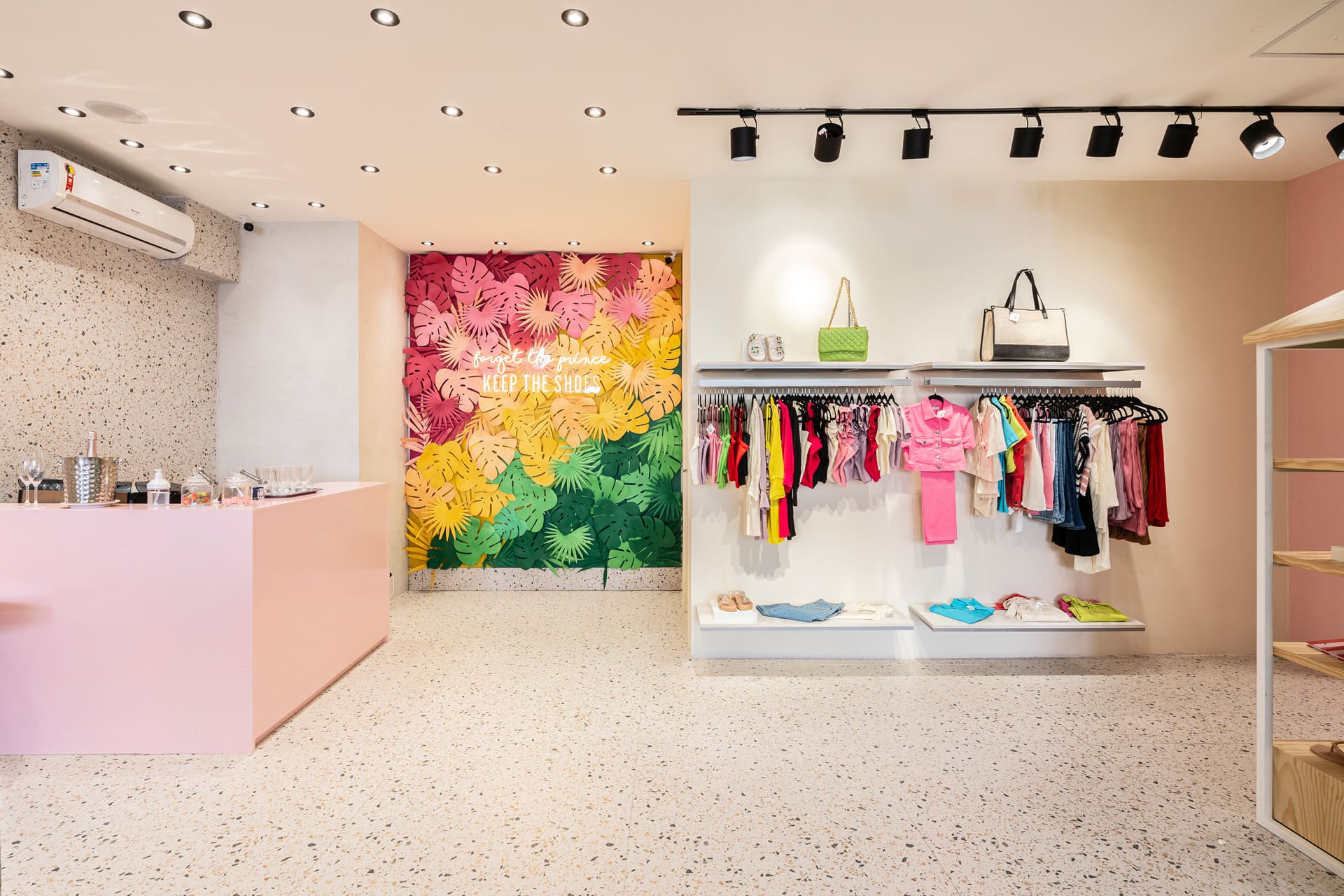 Para transmitir a nova personalidade mais descontraída e amiga da marca no projeto de loja, trabalhamos em três principais frentes. Primeiro, selecionamos uma paleta de cores solar e feminina, misturando cores mais claras com tons mais vibrantes. Segundo, trabalhamos um volumetria mais livre e divertida. E terceiro, trouxemos arte e criatividade para o projeto, criando espaços únicos, instagramáveis, que não deixam ninguém indiferente.