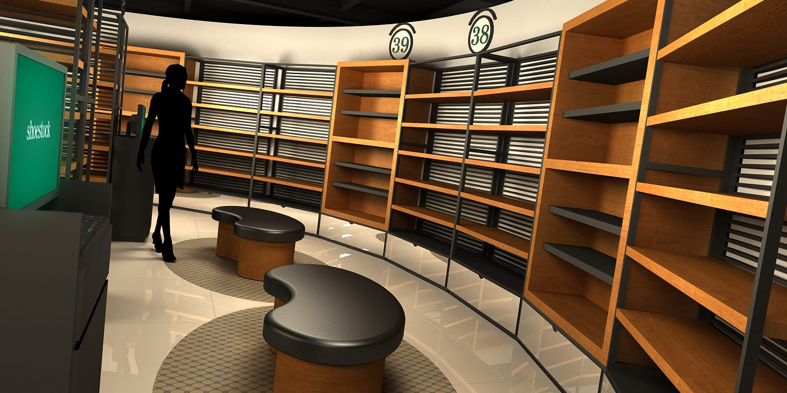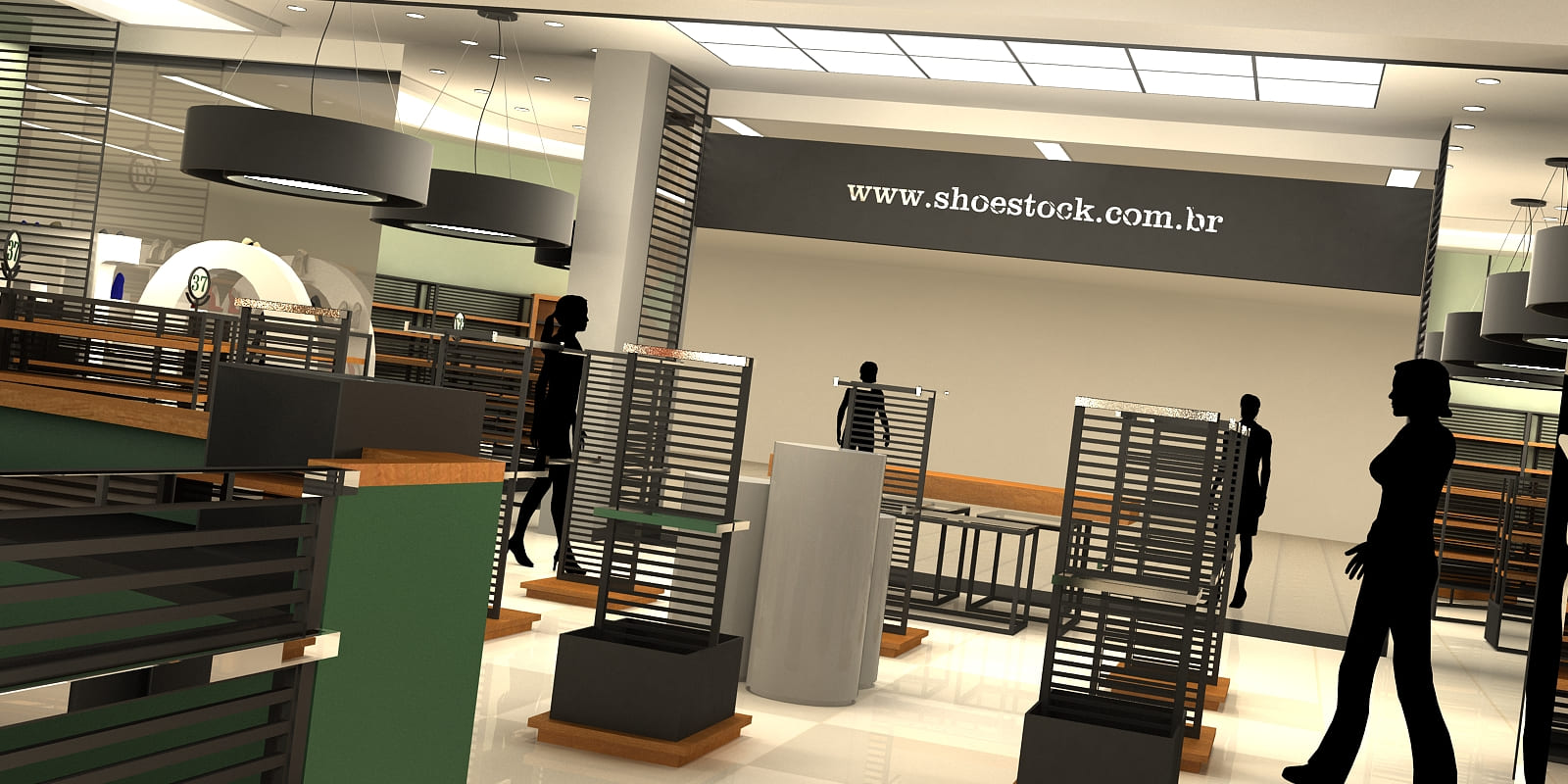 Projeto piloto de novo conceito de loja de shopping para a marca de calçados femininos Shoestock que tem como diferencial, além de sua exclusiva linha de sapatos, a exposição por numeração e o autoatendimento.