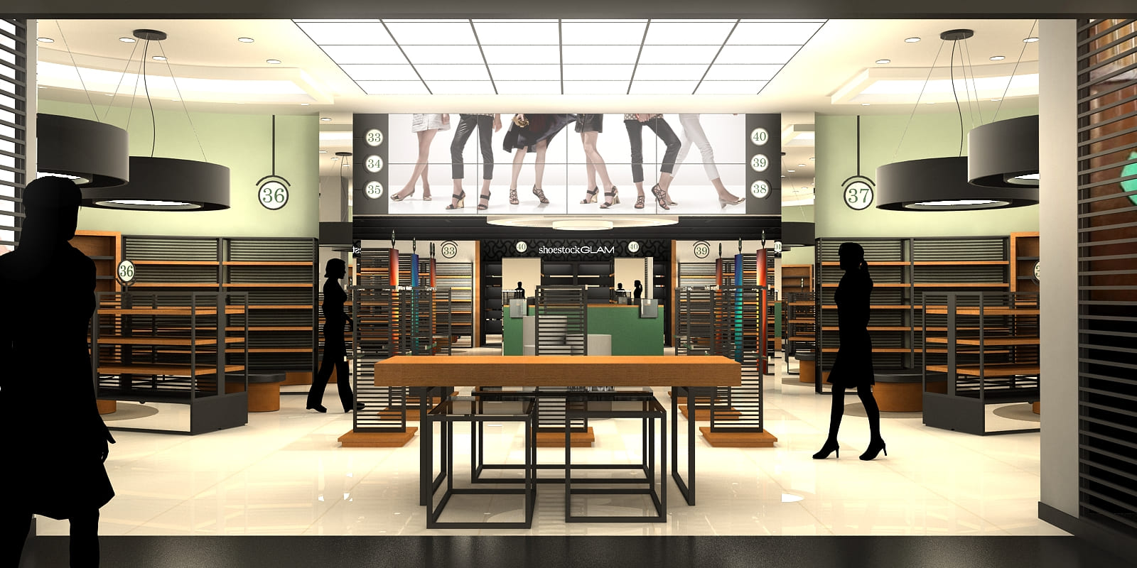 Projeto piloto de novo conceito de loja de shopping para a marca de calçados femininos Shoestock que tem como diferencial, além de sua exclusiva linha de sapatos, a exposição por numeração e o autoatendimento.